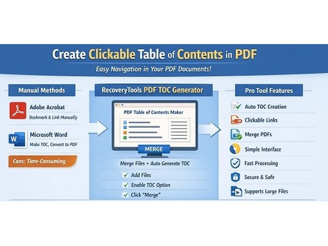 Large documents are easier to manage when you create table of contents in PDF using the RecoveryTools PDF Table of Contents Generator. This trusted solution helps professionals organize reports, manuals, and eBooks with a clear navigation structure. You can create clickable table of contents in PDF automatically without adding links manually.