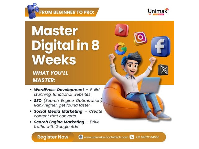 Unimak School of Tech offers both online and offline classes for students, professionals, and entrepreneurs. Learn SEO, Google Ads, Social Media Marketing, WordPress, and more through hands-on live projects.