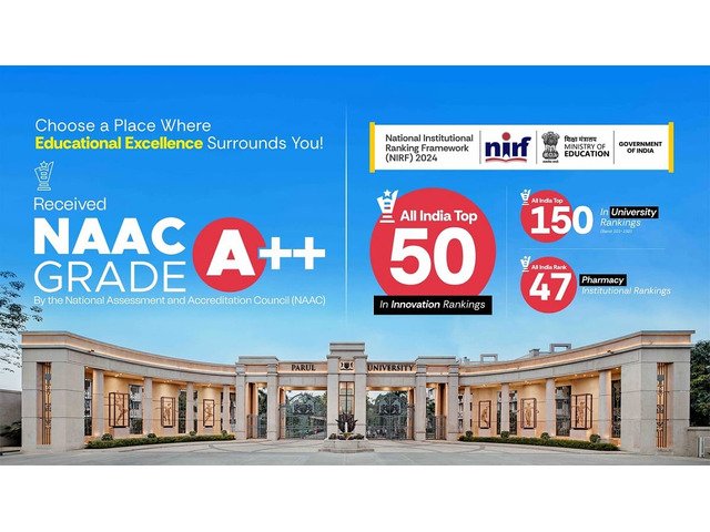 Parul University, located in Vadodara, Gujarat, is one of India’s fastest-growing private universities and the youngest to receive NAAC A++ accreditation in its very first cycle. Known for blending cultural heritage with modern academics, the university offers a wide range of diploma, undergraduate, postgraduate, and doctoral programs across multiple disciplines. With strong industry connections, cutting-edge research, and a focus on innovation, Parul University has become a launchpad for successful careers through startup incubation and impressive placement records.