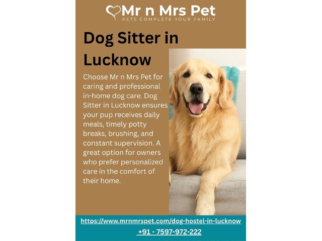 Choose Mr n Mrs Pet for caring and professional in-home dog care. Dog Sitter in Lucknow ensures your pup receives daily meals, timely potty breaks, brushing, and constant supervision. A great option for owners who prefer personalized care in the comfort of their home.